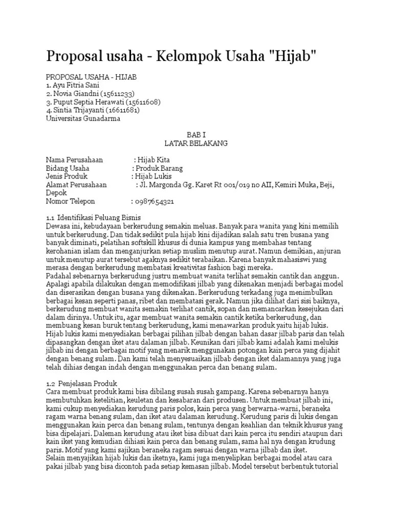 Contoh Latar Belakang Untuk Proposal Produk Kerudung : Contoh Proposal Business Plan Hijab Lukis - Butuh dana segar dalam mengembangkan usaha kalian maka tentu akan mengajukan proposal ke pemerintan daerah sampai dengan pusat.