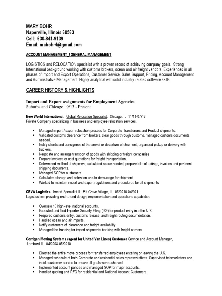 International customer service representative resume samples. Logistics import export specialist resume template. Transportation import/export specialist i job description: 55.05% of resumes with import export coordinator descriptions have at least one of these terms. Top materials for import export specialist job interviews: