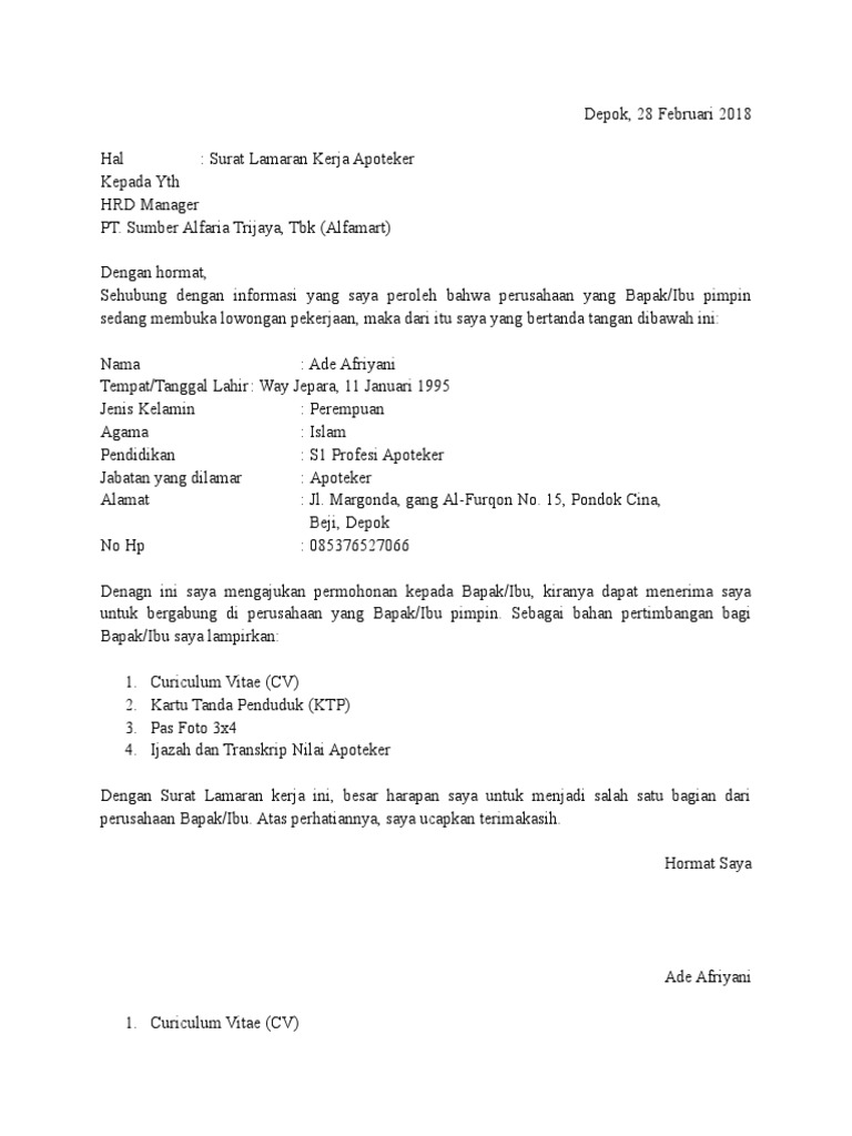 Contoh surat lamaran kerja swalayan supermarket mol dan toko. Dan kamu membutuhkan yang namanya surat lamaran kerja dan daftar riwayat hidup yang baik dan benar sesuai dengan. Contoh surat lamaran kerja cpns; Bisa dikatakan ini semacam kop surat. Inilah beberapa contoh surat lamaran pekerjaan yang menarik. Sesuai garis besar, pembagian surat lamaran kerja bisa dibagi menjadi 3 jenis yaitu surat lamaran kerja sesuai iklan, surat lamaran kerja inisiatif sendir atau dikirimkan ke kantor (perusahaan), dan. The collection that consisting of chosen picture and the best among others. Yang ditulispun yang penting saja, seperti nama dan kontak. Tapi, kop surat ini berisi biodata singkat kita. Walaupun kamu membuat contoh surat lamaran kerja yang bisa dikatakan uwaw, tetapi jika contoh curriculum vitae yang dilampirkan tidak sesuai, jangan harap kamu dipanggil intervew pekerjaan. Contoh cv lamaran kerja yang baik dan benar (curriculum vitae) ditambah surat lamaran pekerjaan merupakan satu kesatuan yang tidak bisa dipisahkan. Jika sudah diputuskan seseorang berhak menerimanya, surat rekomendasi dapat dibuatkan dengan mengikuti format tertentu sesuai kebutuhannya. 1 kediri, 17 agustus 2014 kepada yth, hrd manager pt aneka apa aja jl.